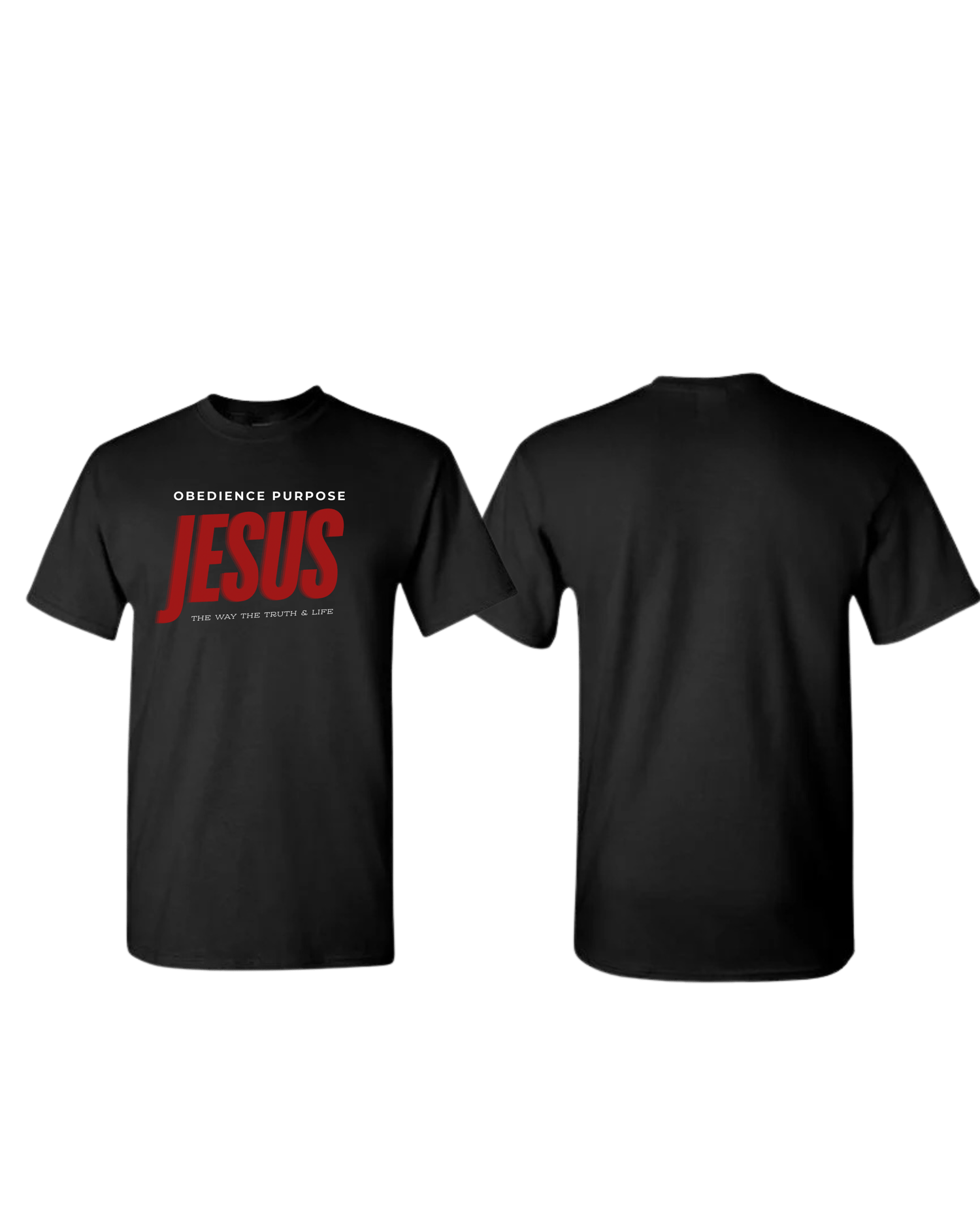 Make a fearless declaration of faith with this powerful tee. Designed with striking red typography, it boldly proclaims the name above every name — Jesus. Beneath, the words “The Way, The Truth & The Life” (John 14:6) remind us that He is the only source of salvation and eternal life.