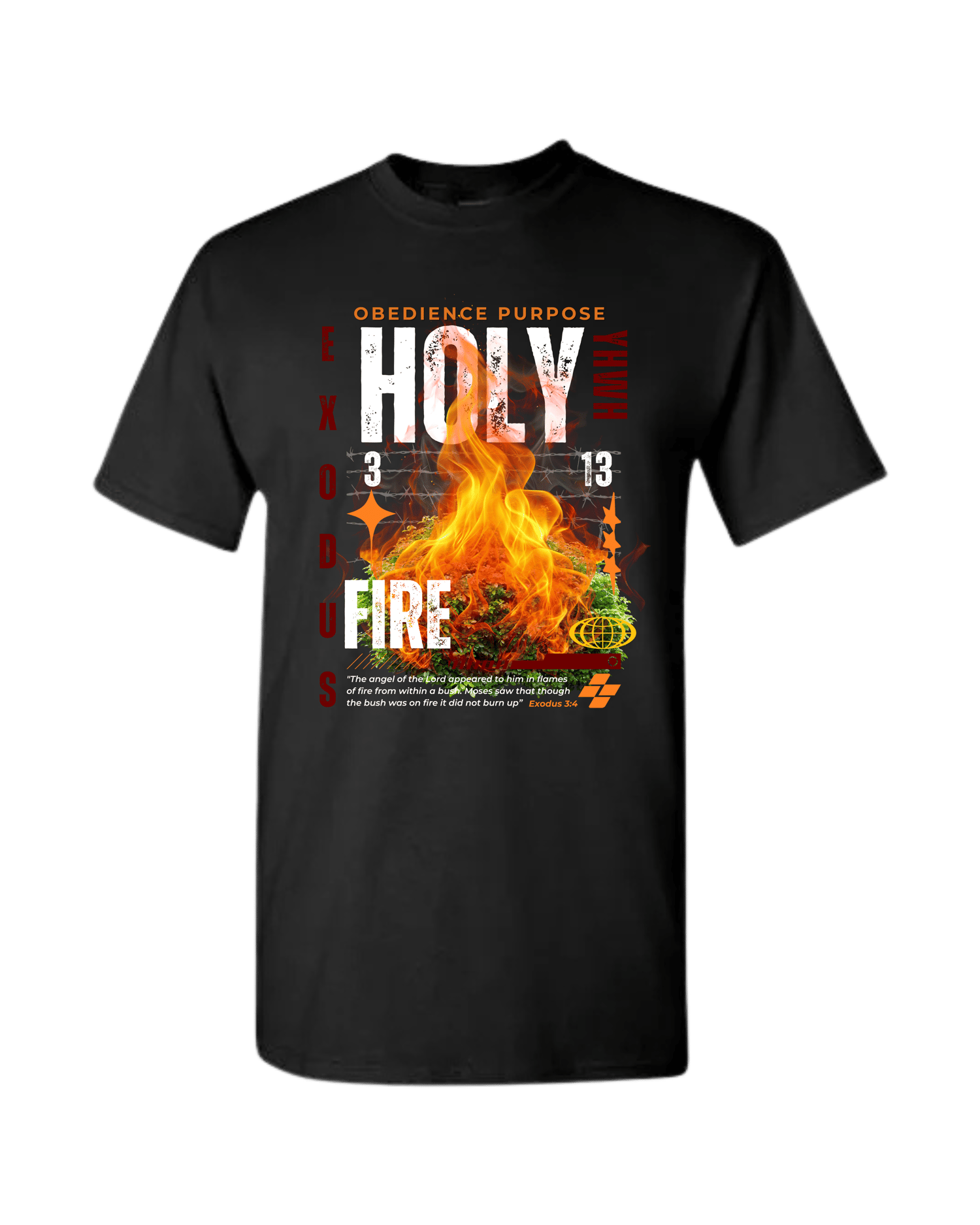 • Front print: “Holy Fire” with Exodus 3:13 scripture